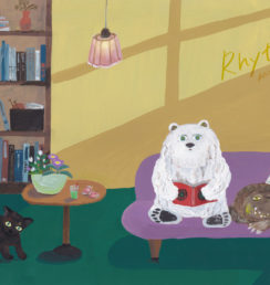 イラストレーター3人、陶芸作家1人による、動物たちのにぎやかなパーティをイメージした展示です。
